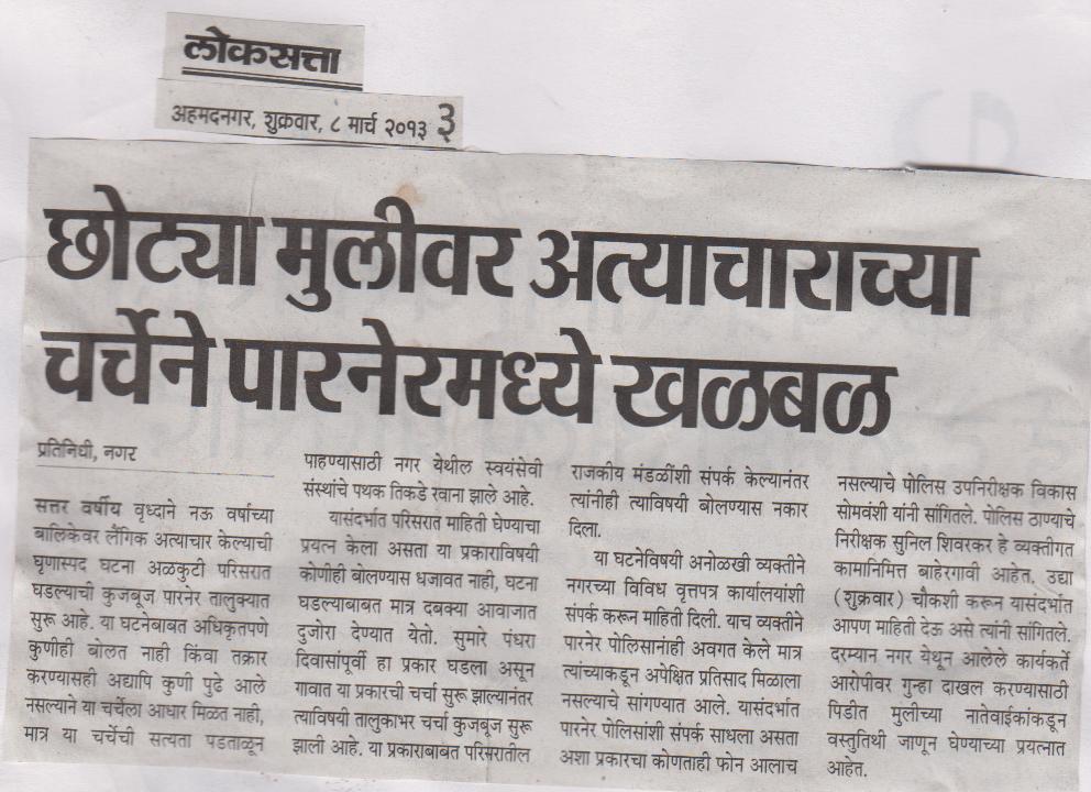 minor girl, the Asst. Police Inspector of Sangamner police station Mr.Bharbale arrested